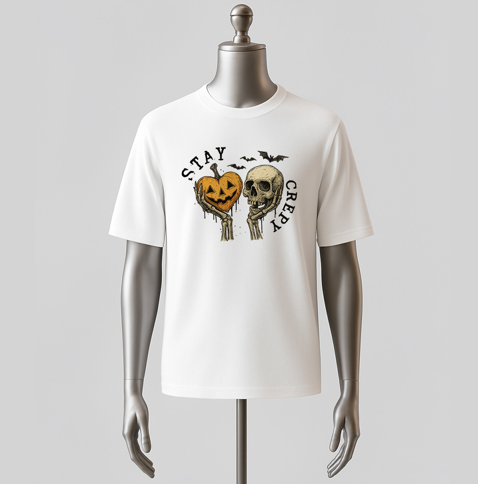 Stay Creepy Halloween T-Shirt – Skull and Pumpkin Graphic Tee